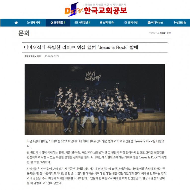 [기사] 나비워십의 특별한 라이브 워십 앨범 'Jesus is Rock' 발매(한국교회공보)