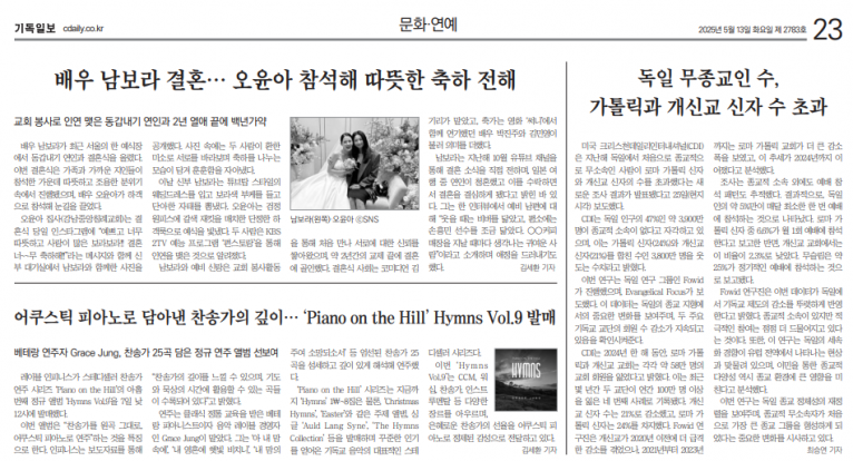 뮤직타임 [기사] 어쿠스틱 피아노로 담아낸 찬송가의 깊이… ‘Piano on the Hill’ Hymns Vol.9 발매(기독일보)
